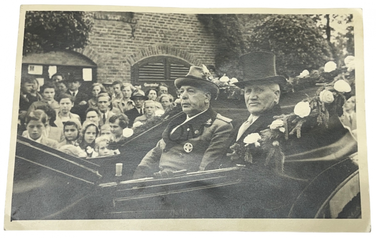 Дубовые ветки на лацканах — знак должности / звания (например, почётный председатель, король стрелков, многолетний гауптман). Вероятно, комплект принадлежал высшему должностному лицу (Gauführer, Präsident, Ehrenmitglied), возможно, на федеральном уровне.