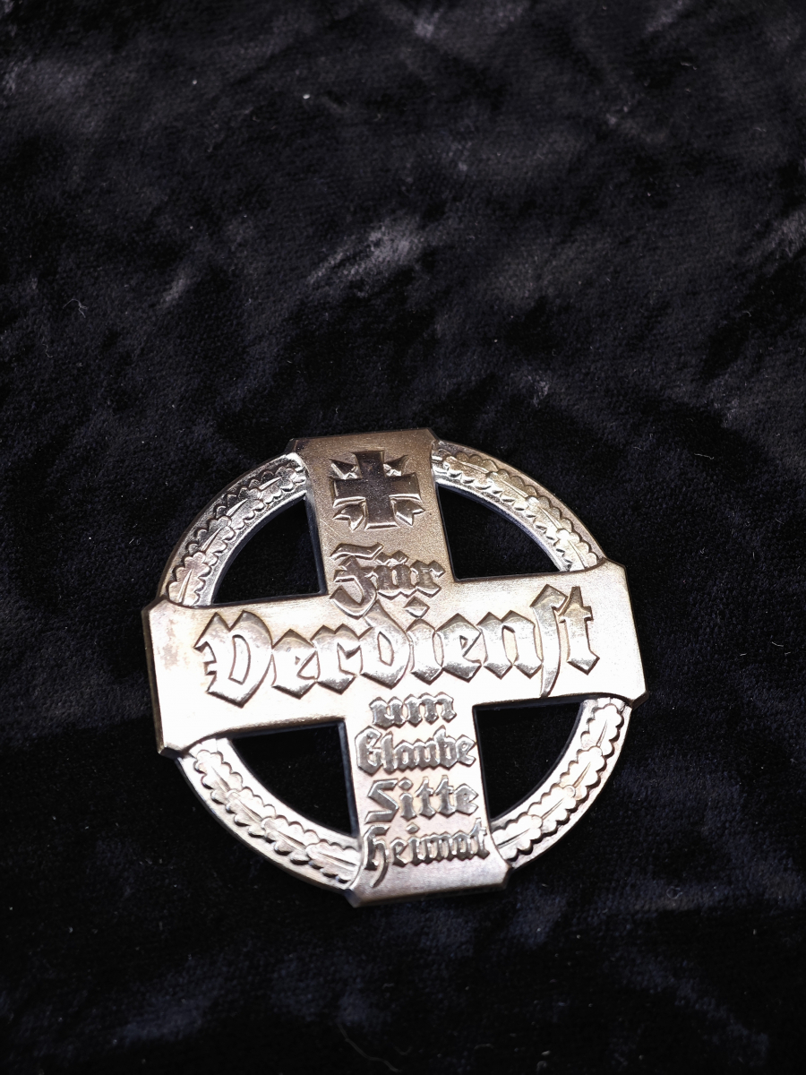 Редкий немецкий знак Федерации исторических немецких стрелковых гильдий "Серебряный крест за заслуги" (За служение вере и обычаям родины).