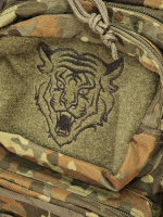 Усиленная мягкая спинка. Эргономичные мягкие наплечные лямки шириной около 5 см с регулировкой по длине. Регулируемые эргономичные лямки с D-кольцом. Регулируемая нагрудная стяжка. Небольшой передний карман с вышитой головой тигра и площадкой под патч (липучка). Несколько рядов системы Molle на большом переднем кармане для модульного снаряжения. Большой передний карман с внутренним органайзером. Основные отделения с несколькими внутренними карманами. Все карманы застегиваются на двухсторонние молнии-зипперы.