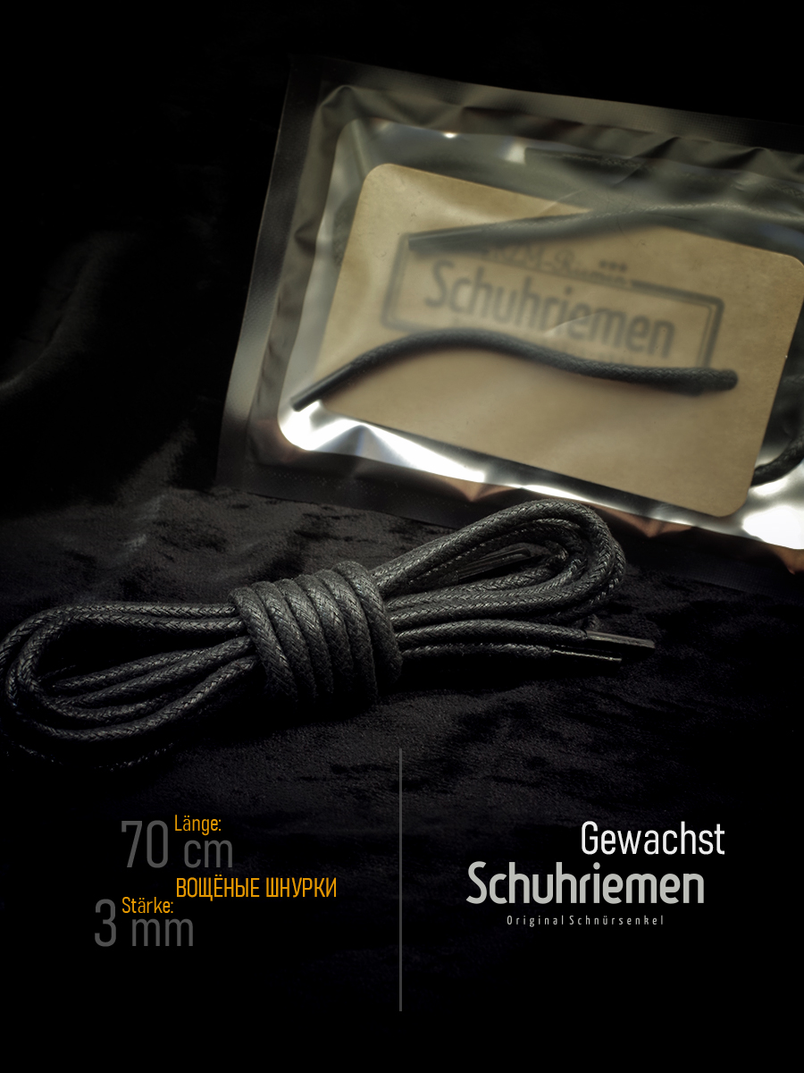 Шнурки Gewachst Schuhriemen (Гевакст Шуримен) изготовлены из длинноволокнистого хлопка и отличаются высокой плотностью.
