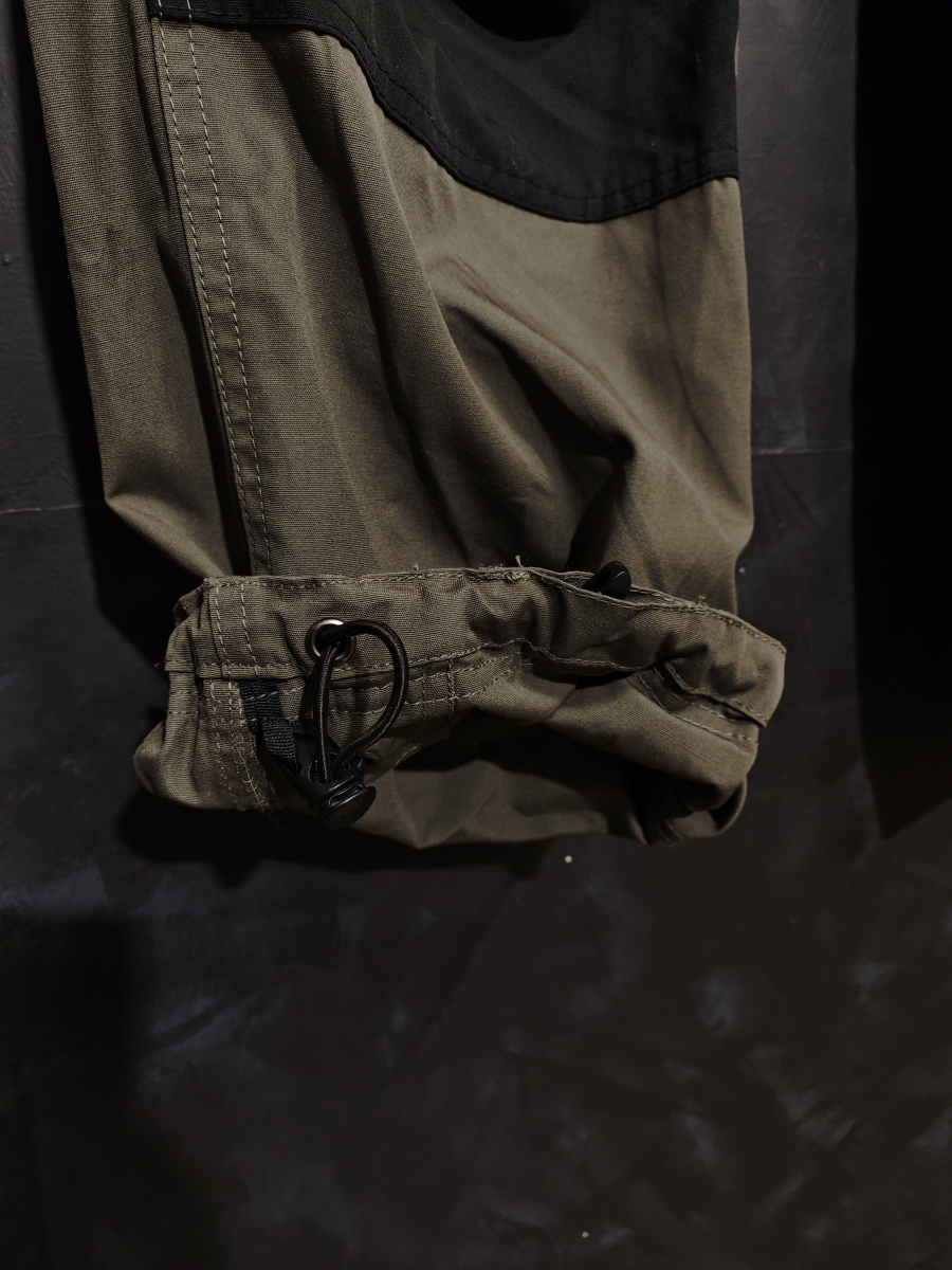 Регулировка объема штанин по низу и крючок для фиксации к шнуркам ботинок.