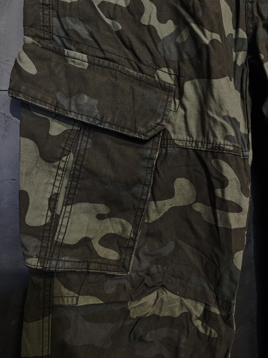 Приятные камуфляжные брюки в универсальном темной камуфляже.