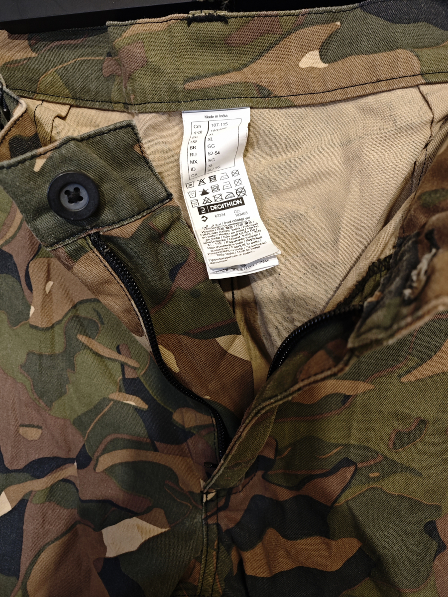 Легкие летние камуфляжные брюки от Декатлон Solognac модель Степпе 300 в необычном лесном камуфляже.