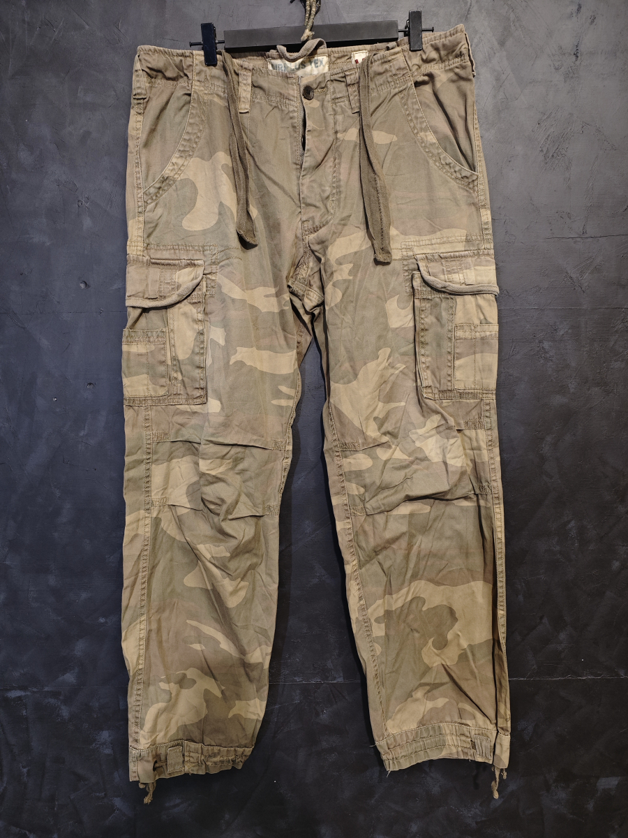 Карго-брюки военного образца из плотного хлопка с большими карманами.