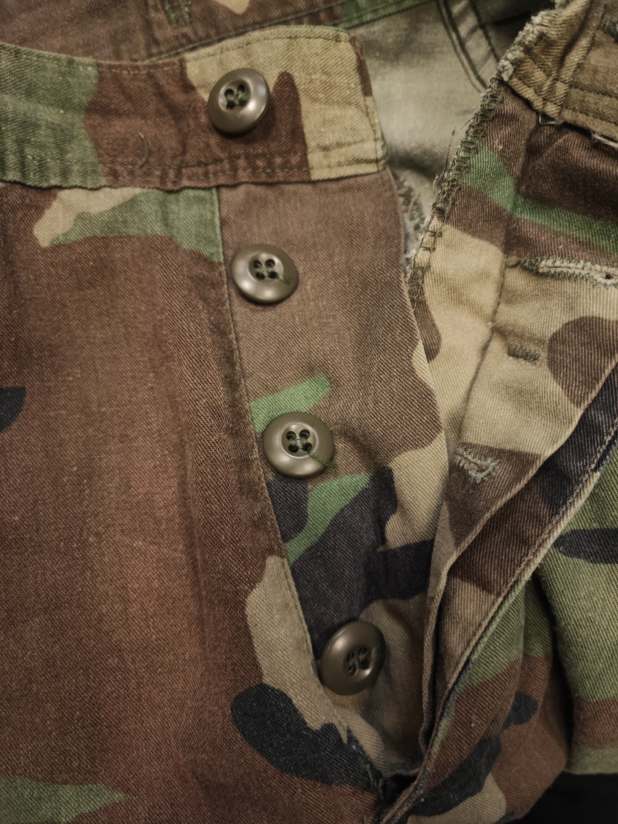 Более редкая ранняя модификация полевых брюк ИВГ армии США - 50/50 NyCo без армирования рипстоп. Battle Dress Uniform - полевая форма армии США старого образца.