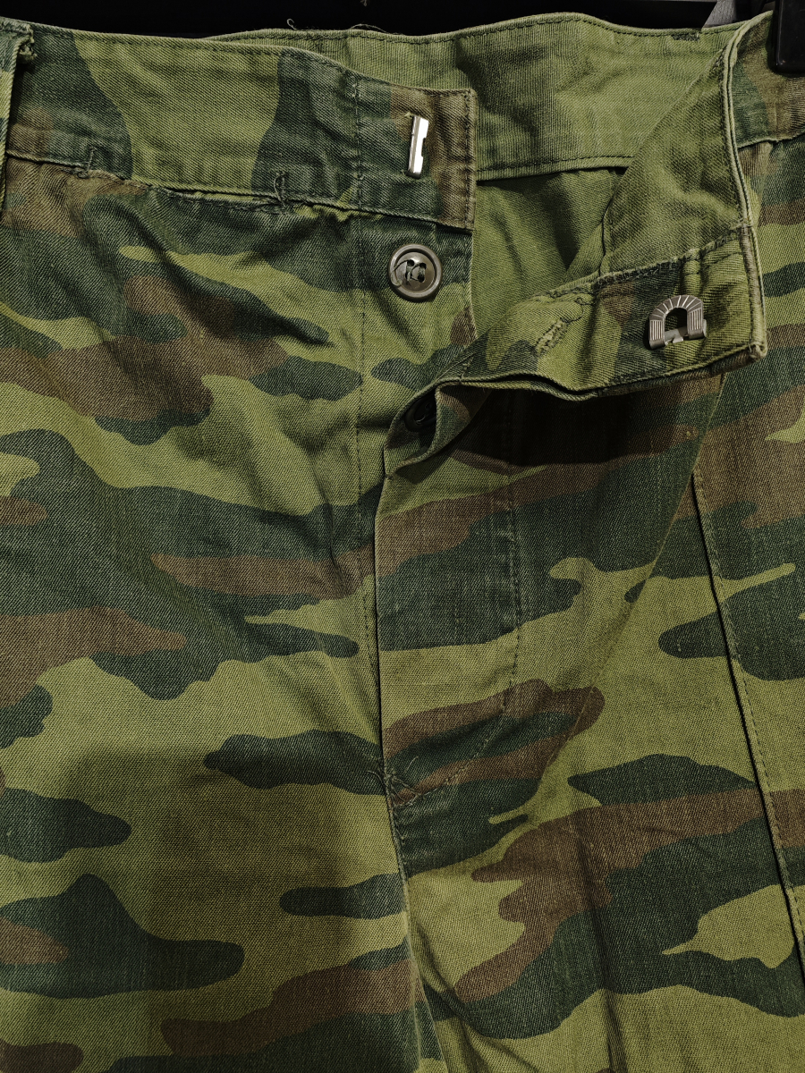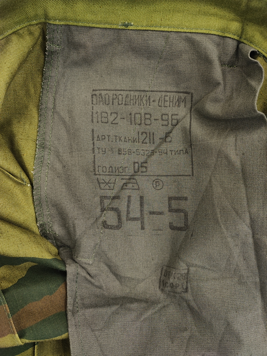 Брюки хлопчатобумажные прямого покроя камуфлированного цвета без накладных объемных карманов для ВДВ ВС РФ образца 1998 года.