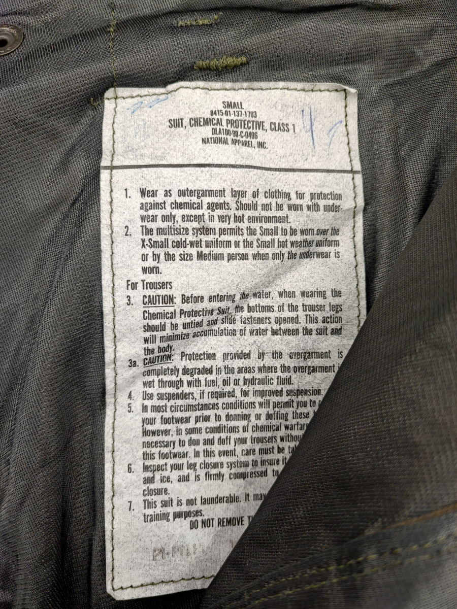Брюки использовались военными США для защиты от опасностей CBRN (ХБРЯ - химическое, биологическое, радиологическое и ядерное).