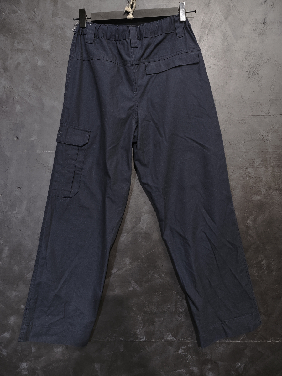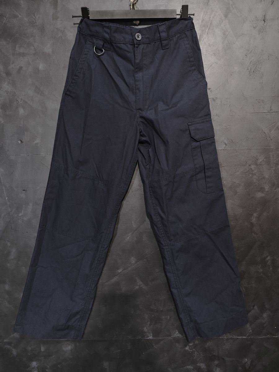 Брюки имеют регулируемый эластичный пояс, карманы, шлевки для ремня и стандартный прямой крой