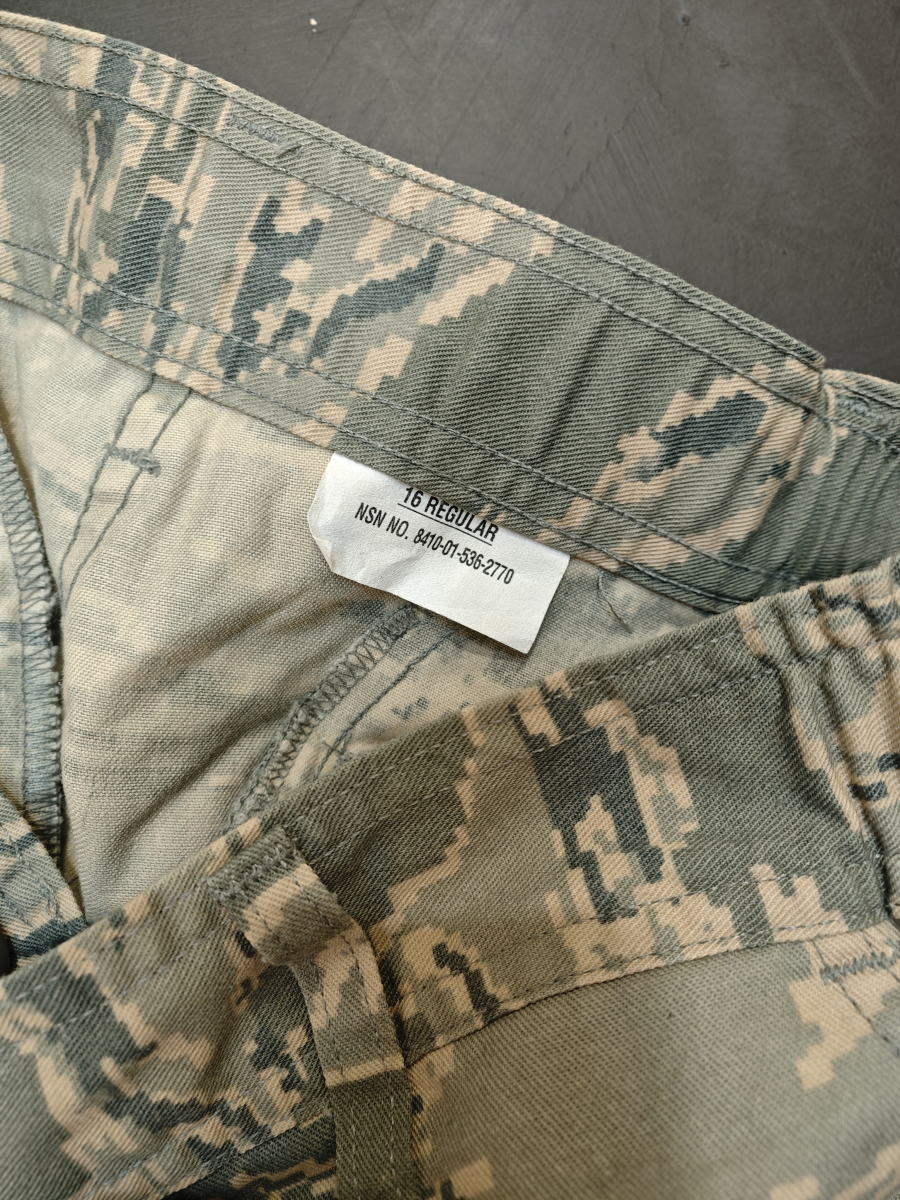 Первоначально брюки начали выпускать в 2007 году для наземного персонала. Отличительный камуфляж представляет собой смесь тигровых полос времен войны во Вьетнаме и пиксельного рисунка, который будет отлично смотреться в военной коллекции или для использования в страйкболе и пейнтболе. ABU был полностью введен в эксплуатацию 1 октября 2011 года, полностью заменив BDU и DCU, хотя к тому моменту большинство летчиков носили ABU уже несколько лет.