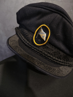 Детали: главная особенность — два кожаных (позже пластиковых) «штормовых» ремешка поверх тульи, которые в непогоду можно было застегнуть под подбородком, чтобы фуражку не сдуло ветром. Низкий околыш (около 3 см).