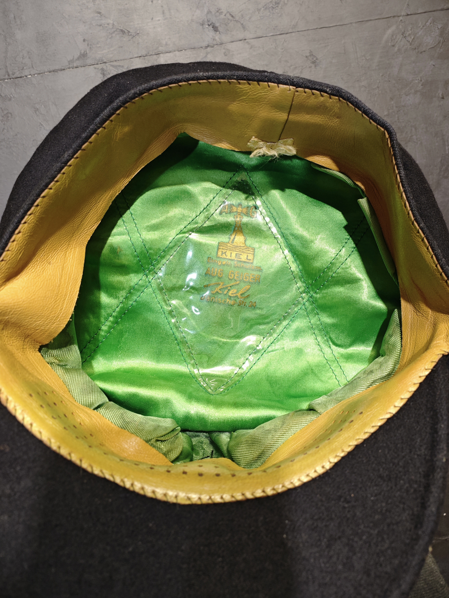 Детали: Высокий жесткий околыш (от 5 до 7 см) — главное отличие. Вместо практичных ремешков — декоративный витой шнур (часто золотого или серебряного цвета) над козырьком. Козырек (Visier) не гладкий, а украшенный тиснением в виде дубовых листьев и желудей — классического немецкого символа доблести и долголетия. Такой козырек называется «Geflochtenes Visier» («плетеный/витой козырек»). Шнур самой фуражки (окружающий тулью у основания околыша) также витой. Кто носил: Более состоятельные моряки, шкиперы, лоцманы, ветераны флота.