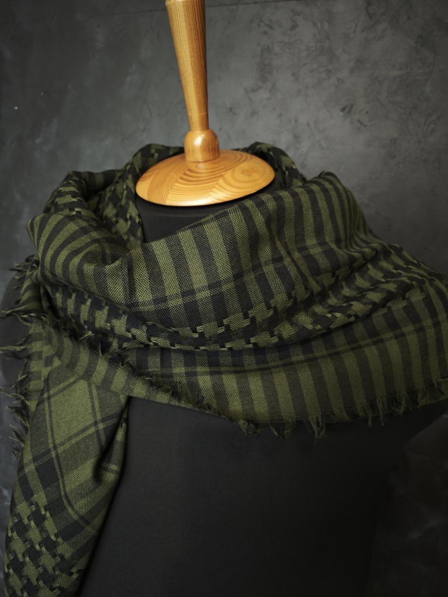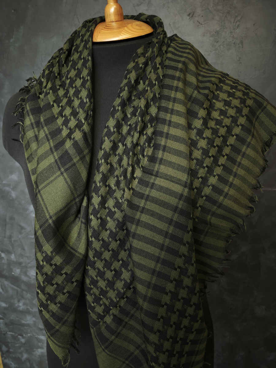 Более легкая версия классической черно-зеленой арафатки с другим орнаментом и без классических узелков.