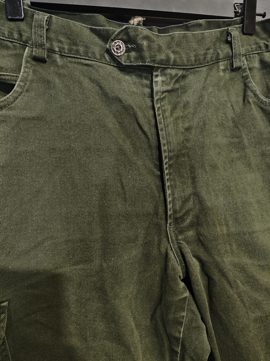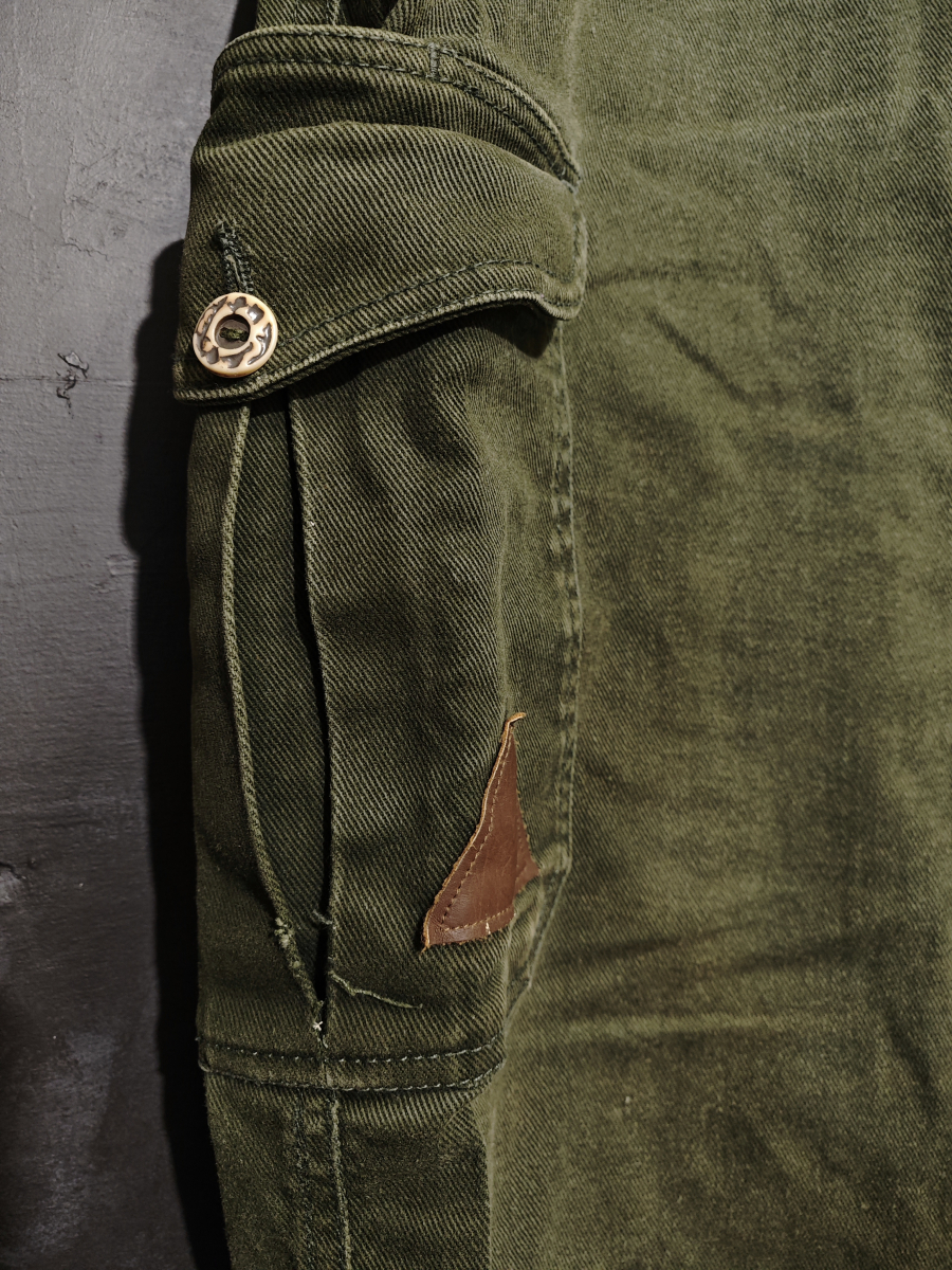 Мягкая хлопковая ткань, бесшумная, пять карманов. В том числе вертикальный карман для ножа. Оригинальные пуговицы стилизованные под рог животного.