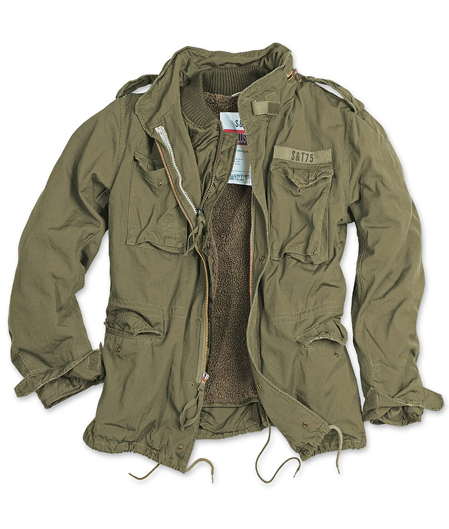 Винтажная куртка Surplus Tex ST75 в стиле М65 с теплой подстежкой из шерпы в комплекте, в оливковом цвете.