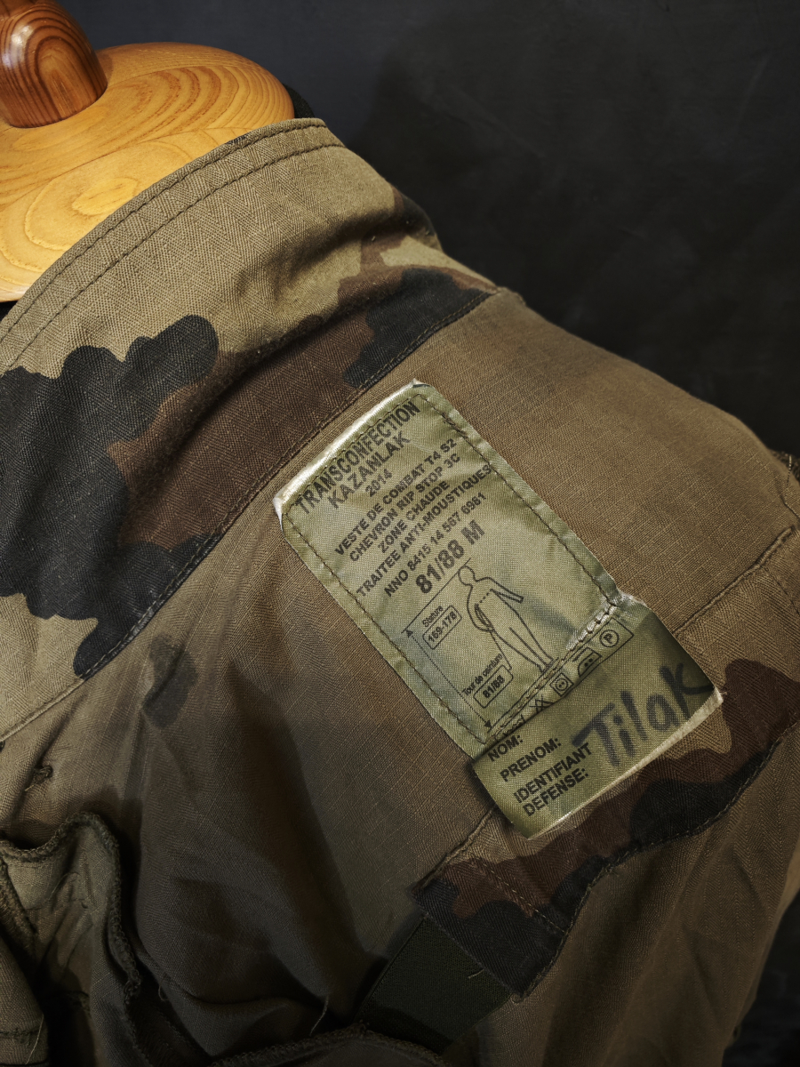 Большая часть имеет обозначение на бирке Veste de Combat T4 S2 Chevron Rip Stop 3C BAR, TE, Zone chaude, Traitee Anti-Moustiques.