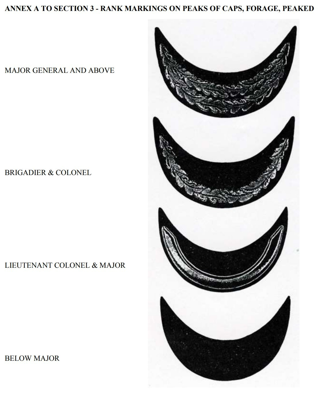 ПРИЛОЖЕНИЕ A К РАЗДЕЛУ 3 – ЗНАКИ РАЗЛИЧИЯ ПО ЗВАНИЮ НА КОЗЫРЬКАХ ФУРАЖЕК (FORAGE) И СЛУЖЕБНЫХ ФУРАЖЕК С КОЗЫРЬКОМ (PEAKED)