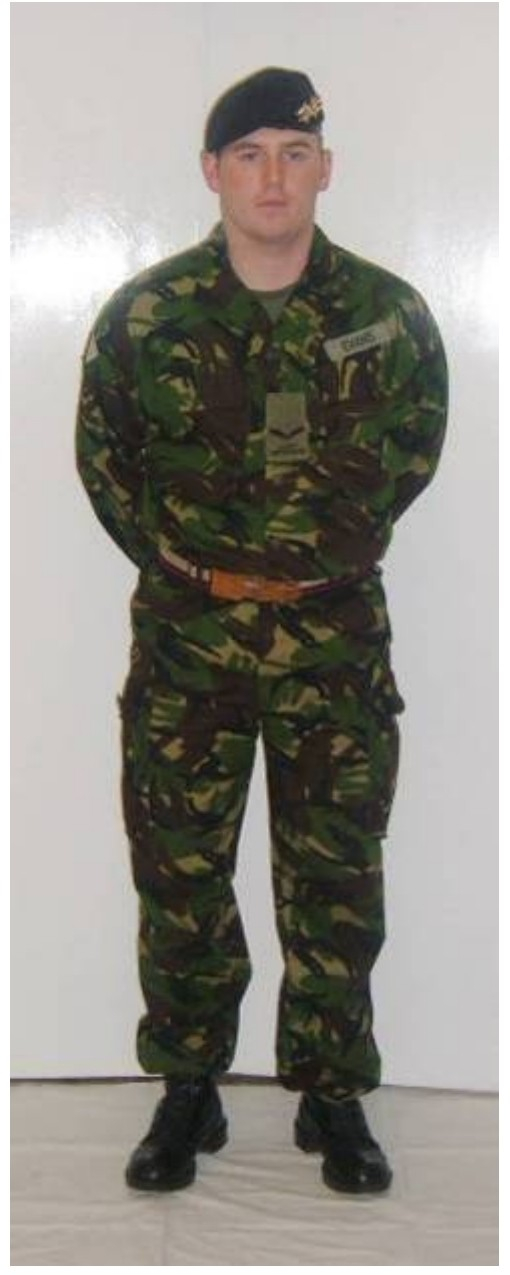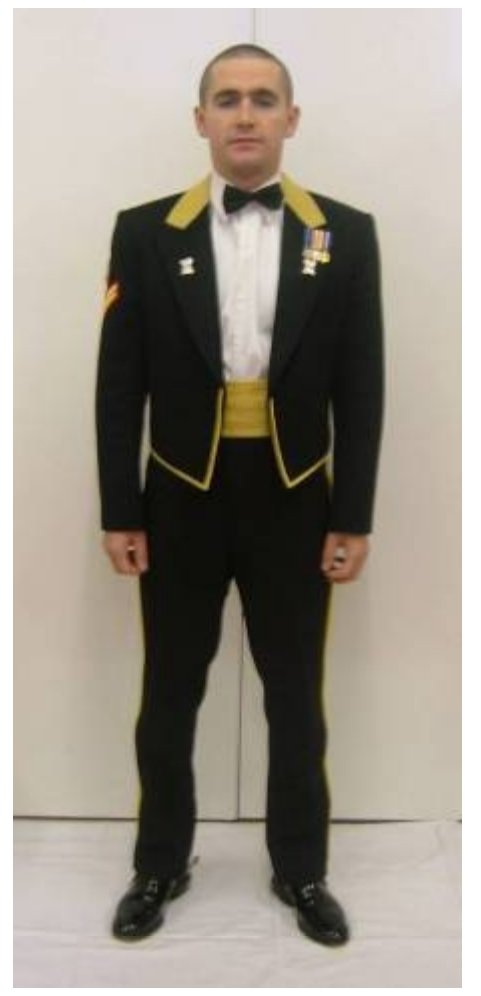 Младшие сержанты (JNCO) | Нагрудные знаки (Collar Badges) - металлические (metal type). Миниатюрные медали с креплением "вполнагрудия" носятся над левым нагрудным знаком (above left collar badge). Ботинки «Джордж» со шпорами «лебединая шея». |