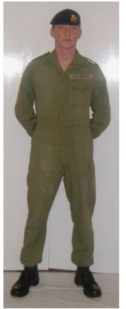Офицеры (Officer) | Боковая шапка (Side Hat), простые латунные пуговицы спереди (plain brass buttons on front), тканевая кокарда (cloth Capbadge) сбоку. Полковой джемпер (Regt Jumper): с налокотниками (elbow patches) и погонами для знаков различия (shoulder rank epaulettes). |