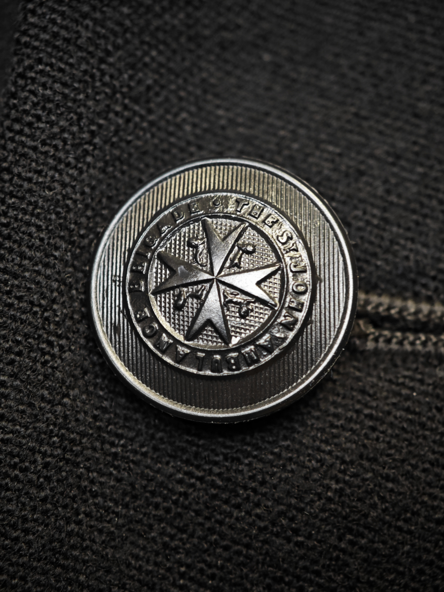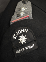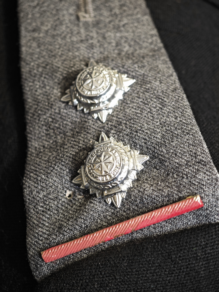 Китель сержанта из Команды управления подразделением Бригады Св. Иоанна на острове Уайт. Это был не рядовой доброволец, а опытный, давно служащий младший командир и администратор, который играл ключевую роль в повседневной работе и управлении своим местным подразделением скорой помощи.