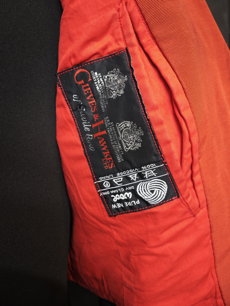 Gieves & Hawkes — один из самых известных и авторитетных портных военной и церемониальной униформы в Великобритании. Это указывает на высокий статус владельца и качество изделия.