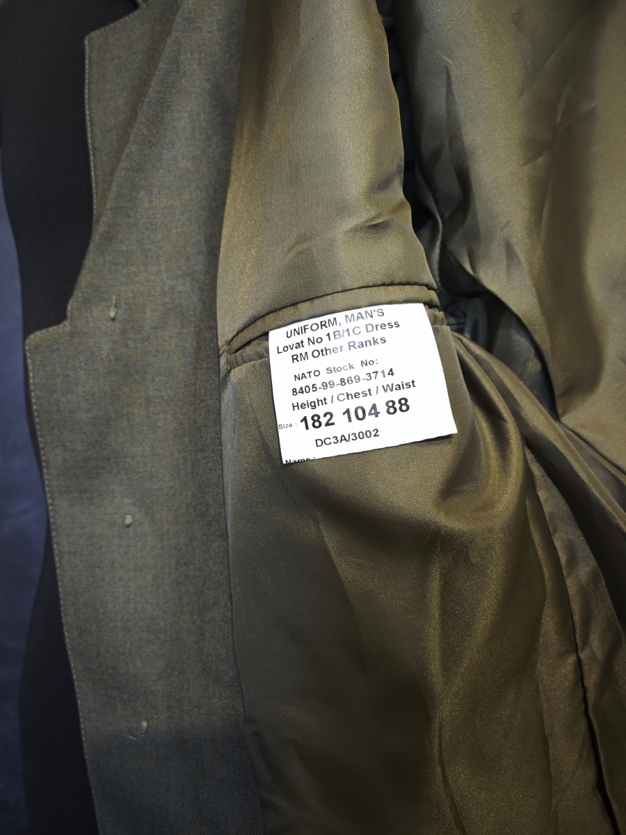 Это парадный китель Королевской морской пехоты, который является аналогом армейской No1 Dress (парадно-выходная форма). Буквенный суффикс "B" и "C" указывает на конкретный вариант для Royal Marines.