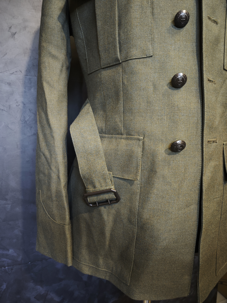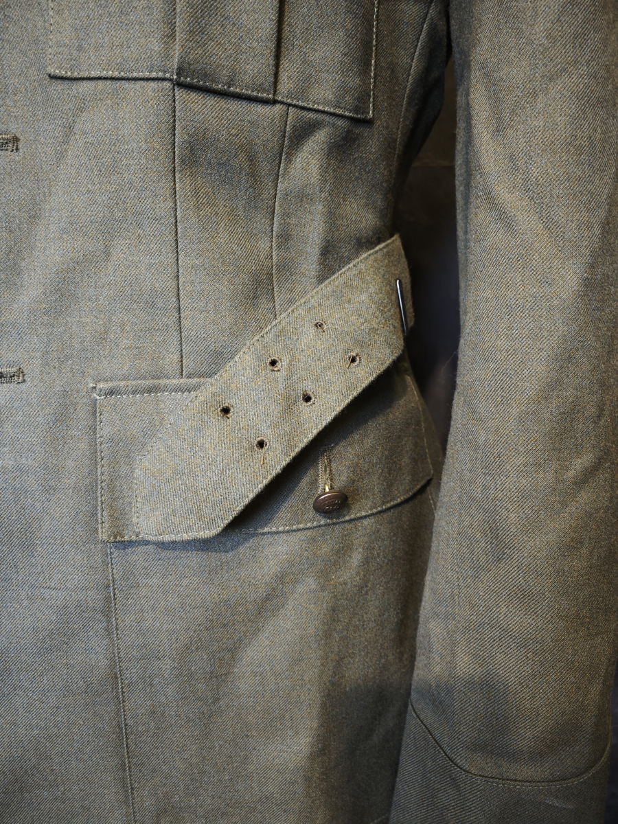Китель сшит из ткани цвета "Ловат" (Lovat). Это характерный зеленовато-коричневый оттенок, уникальный для Королевской морской пехоты, названный в честь реки в Шотландии.