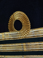 Нарукавные знаки: три золотые ленты на зеленом фоне с петлей на верхней. Данная комбинация является знаком различия инженера-механика (Engineer Officer). Три широких золотых полосы соответствуют званию Коммандер (Commander), что эквивалентно армейскому майору/подполковнику. Зеленый фон (подкладка) между полосами — это цвет рода войск (branch colour). Темно-зеленый (dark green) традиционно присвоен инженерно-механической службе Королевского флота. Петля (завиток) на верхней полосе — известна как «инженерная петля» (executive curl). Она присутствует на знаках различия всех флотских офицеров, кроме чисто медицинских или капелланов. В данном контексте она подтверждает, что это строевой офицер (в данном случае — инженер).