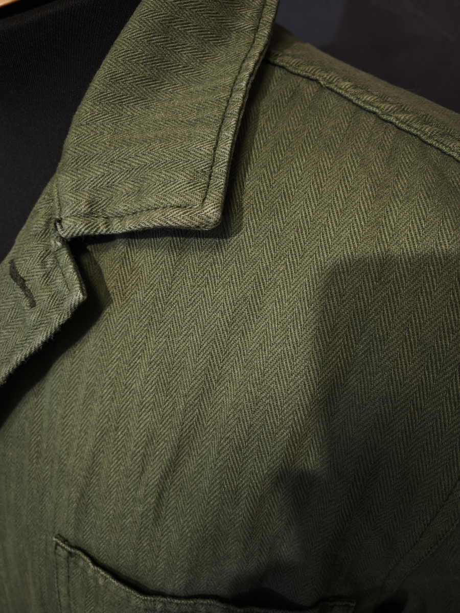 Винтажный оливковый китель S.Oliver из хлопковой ткани с рисунком елочка.