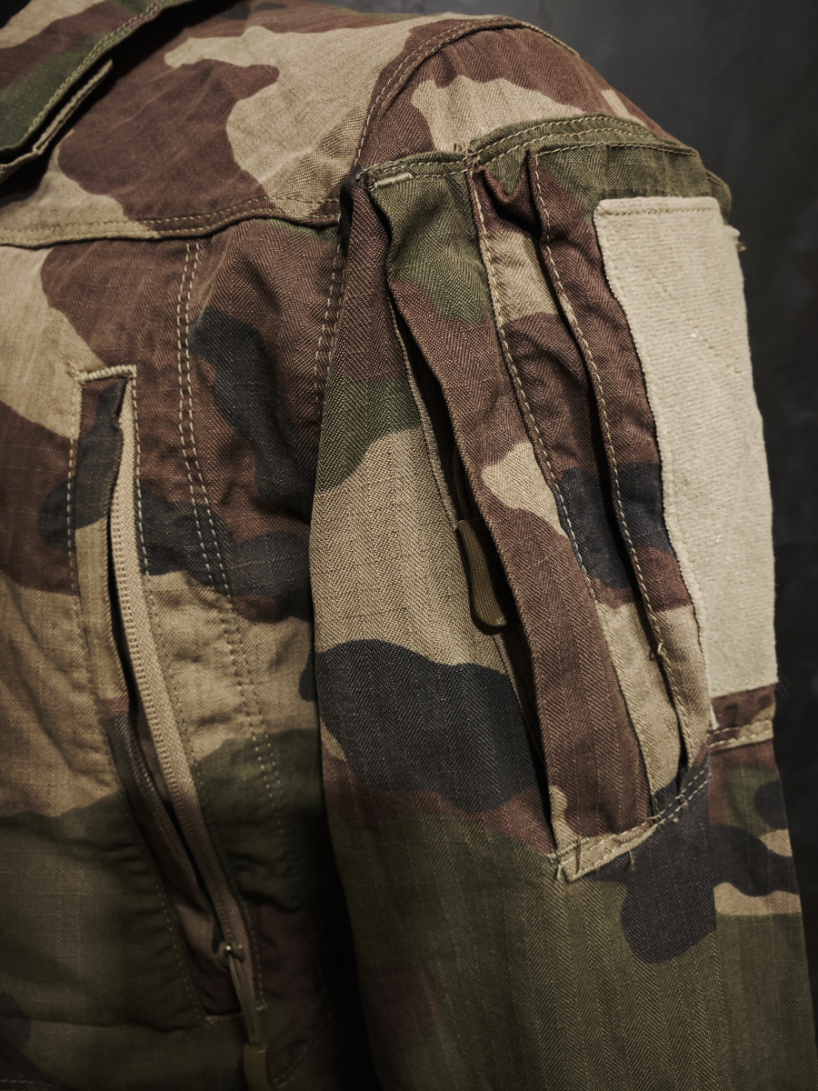 Костюм F3 изготовлен из ткани Ripstop - устойчивой к разрыву сетчатой ткани. Покрой также был изменен и стал более приталенным по сравнению с курткой T4, чтобы соответствовать лучшей адаптации к новому бронежилету ВС Франции.