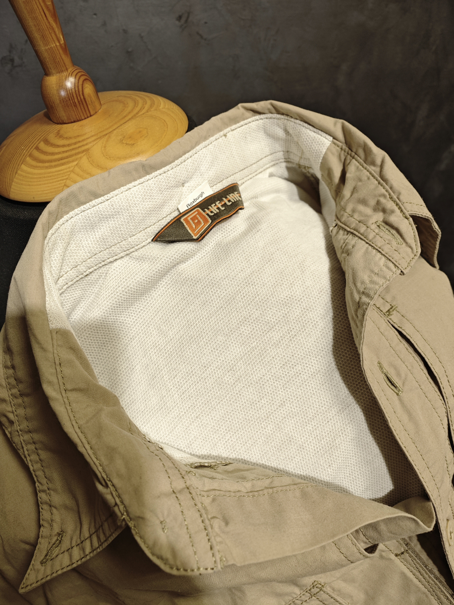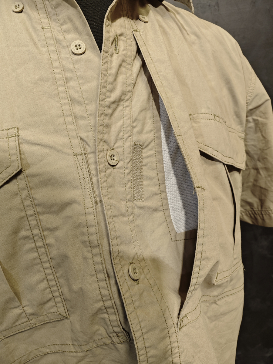 Двойные вместительные карманы на груди. Небольшой карман на левом рукаве.