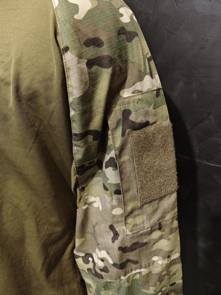 Рубашка под бронежилет с эластичным корпусом и рукавами из плотной армированной рипстоп ткани камуфляжной расцветке мультикам.