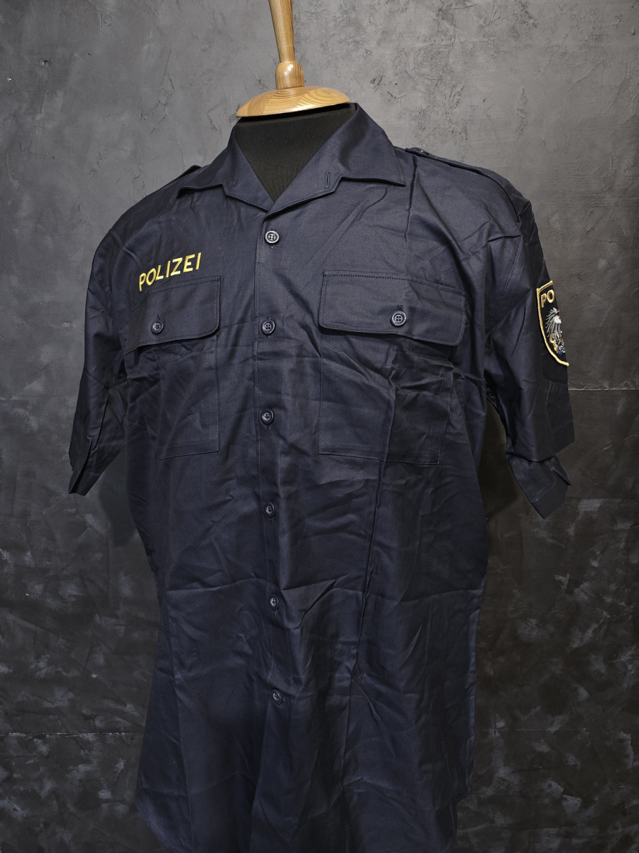 Эта тёмно-синяя сорочка с коротким рукавом является оригинальным элементом униформы Федеральной полиции Австрии (Bundespolizei). Произведенная из 100% хлопка, она представляет собой образец современной форменной одежды полиции Австрии.