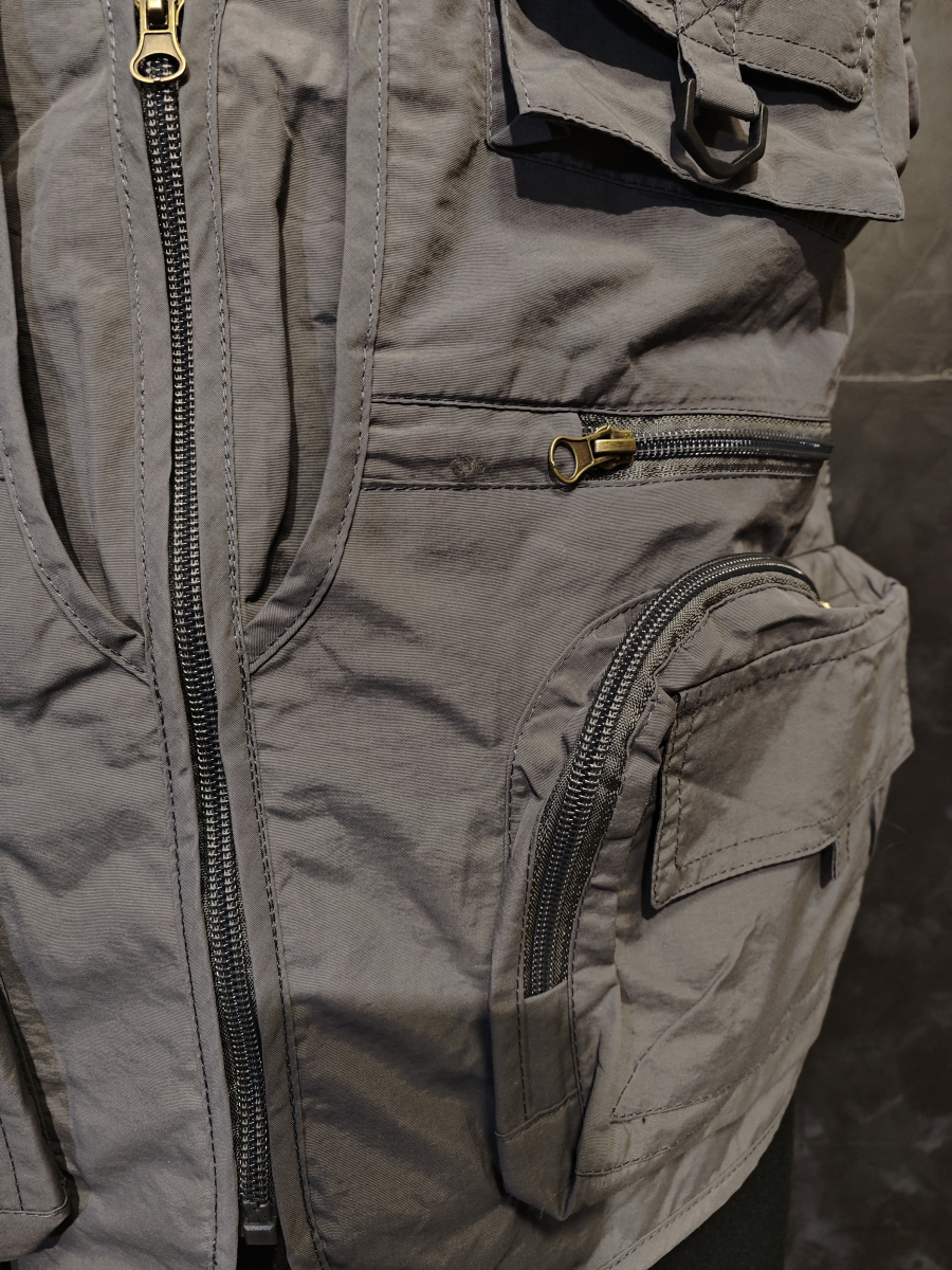 Практичный жилет для активного отдыха в американском стиле, выполненный в армейском стиле, серого цвета.