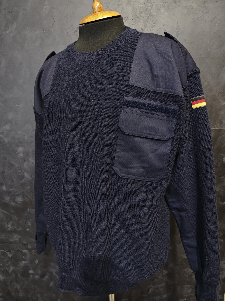 Джемпер с круглым воротом и карманом на груди. На рукавах нашивки немецкого флага, причем они не коммерческие, это оригинальные нашивки (мы их легко отличаем от коммерческих типа милтека или фукса).