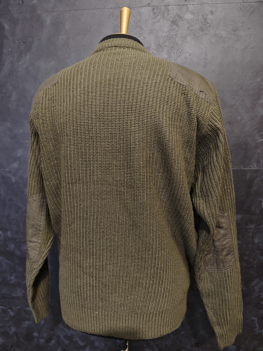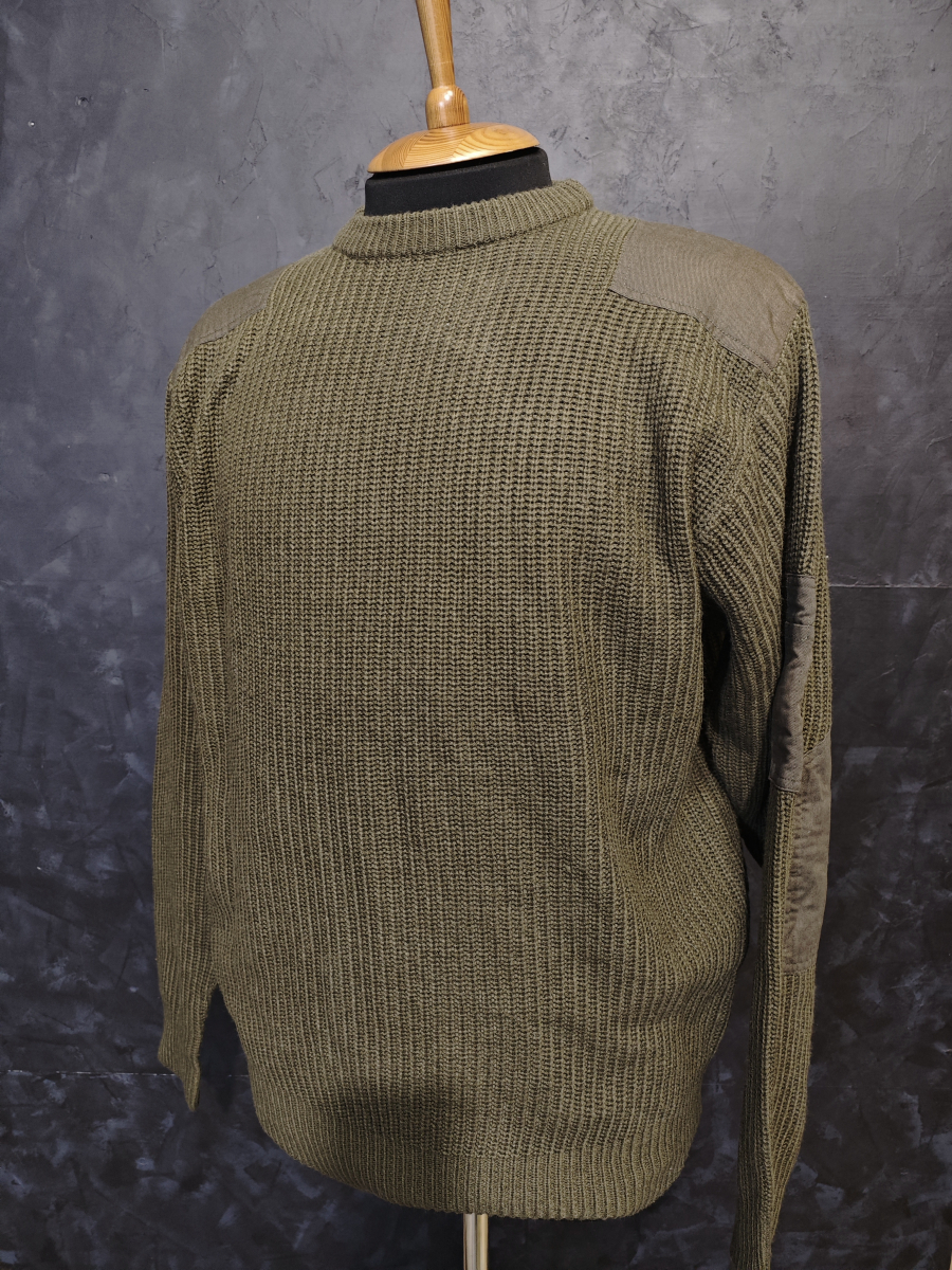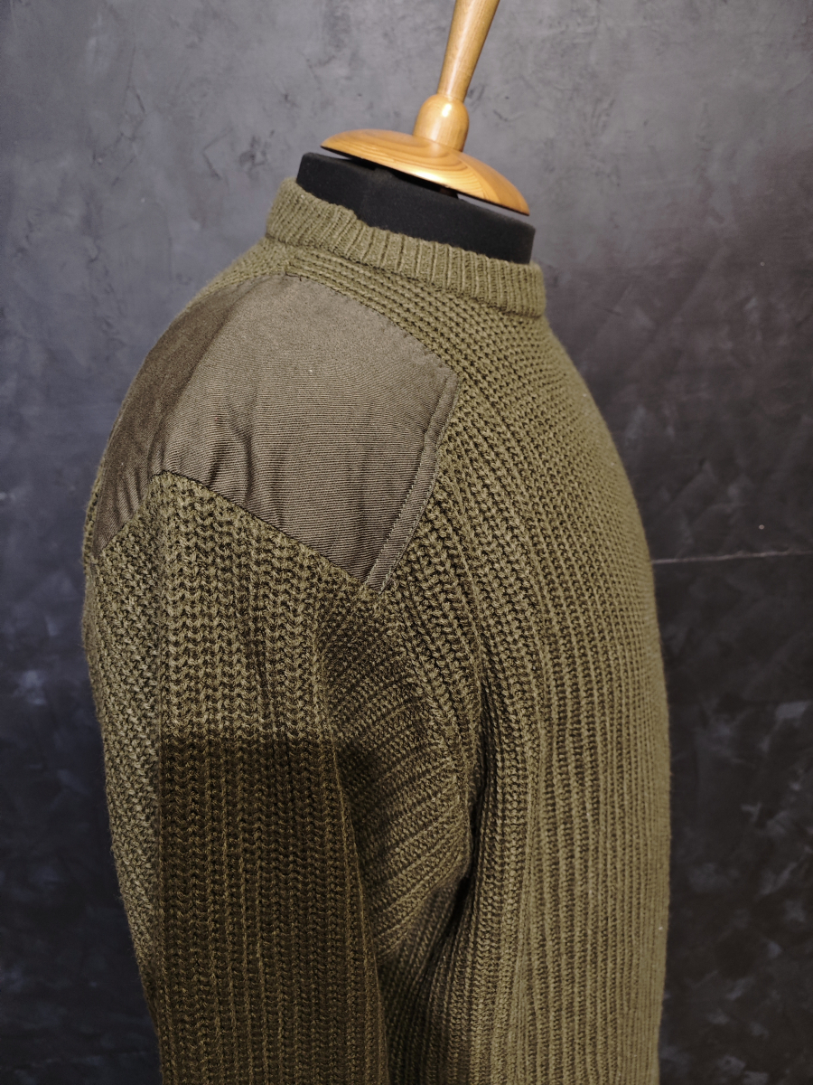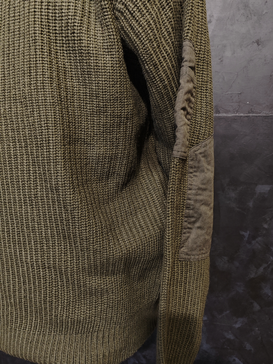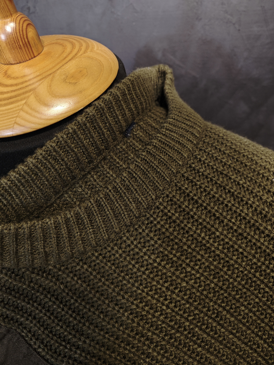 Свитер крупной вязки с круглым воротом цвета хаки.