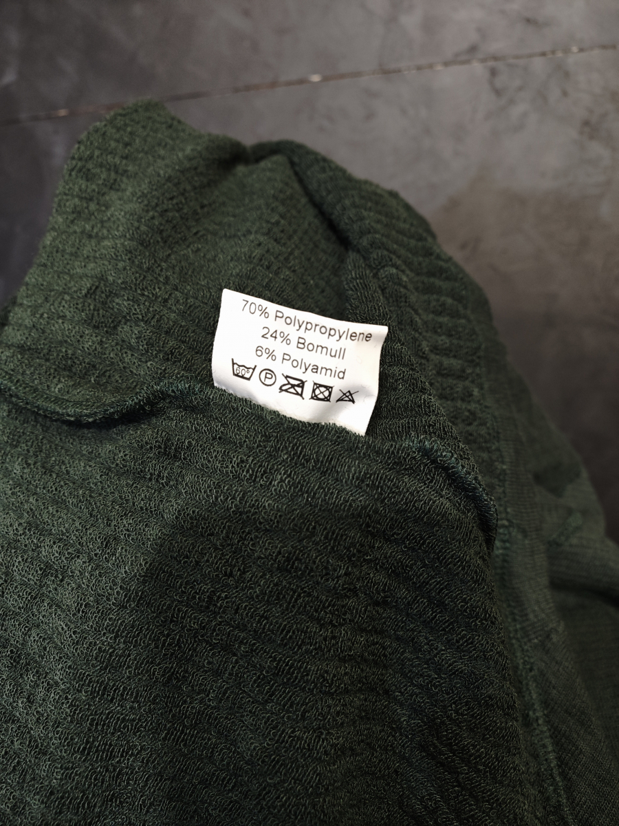 Это очень интересный и функциональный состав. Смесовая ткань с высоким содержанием полипропилена встречается нечасто, и это говорит о том, что термокофта создана для активного спорта или охоты/рыбалки.