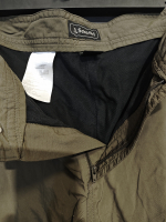 Охотничьи брюки из легкого материала с тонкой утепляющей подкладкой - с дефектом молнии бокового кармана. Молнию необходимо заменить.
