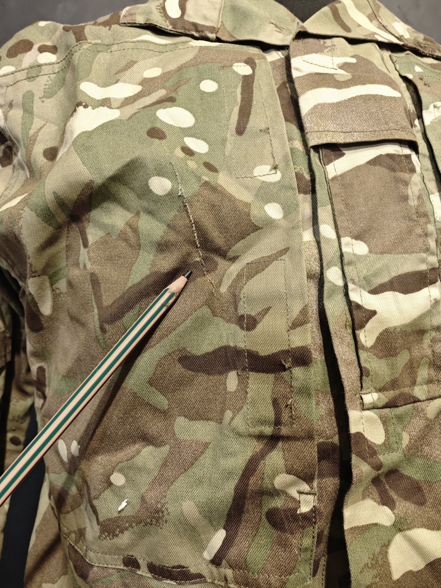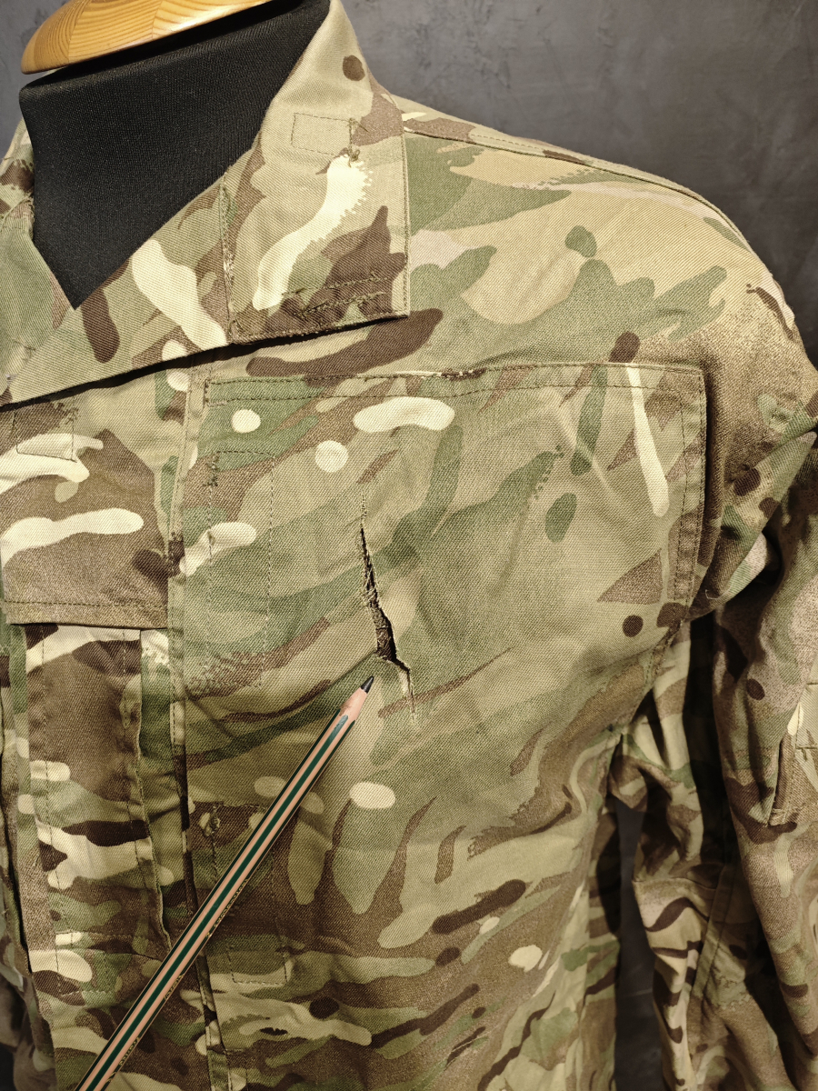 Рубашка полевая британская с колото-резаными ранами, но новая. Скорее всего, она получила повреждения во время вскрытия мешка таможенниками. Которые не церемонятся с товаром.