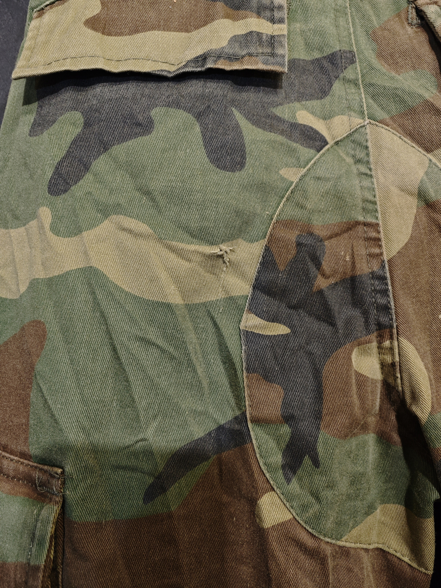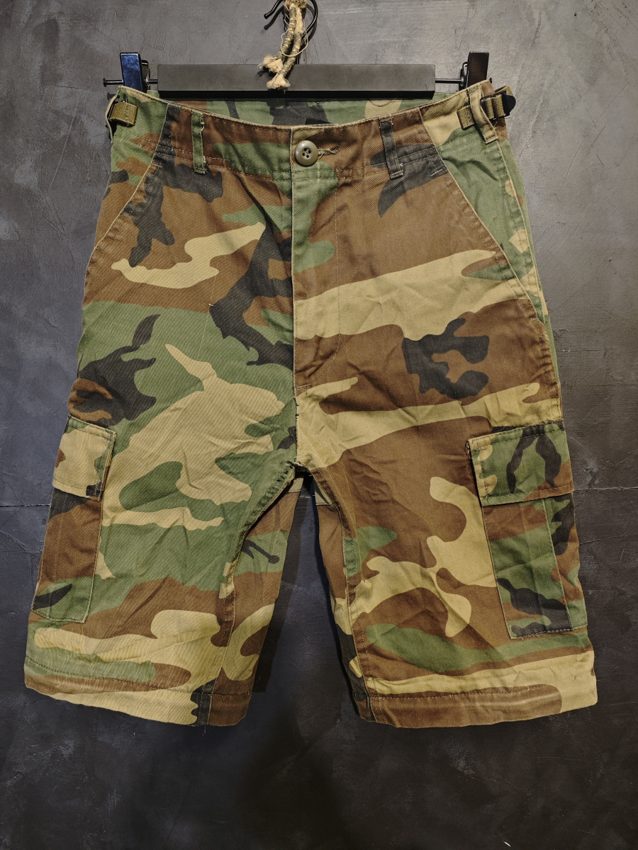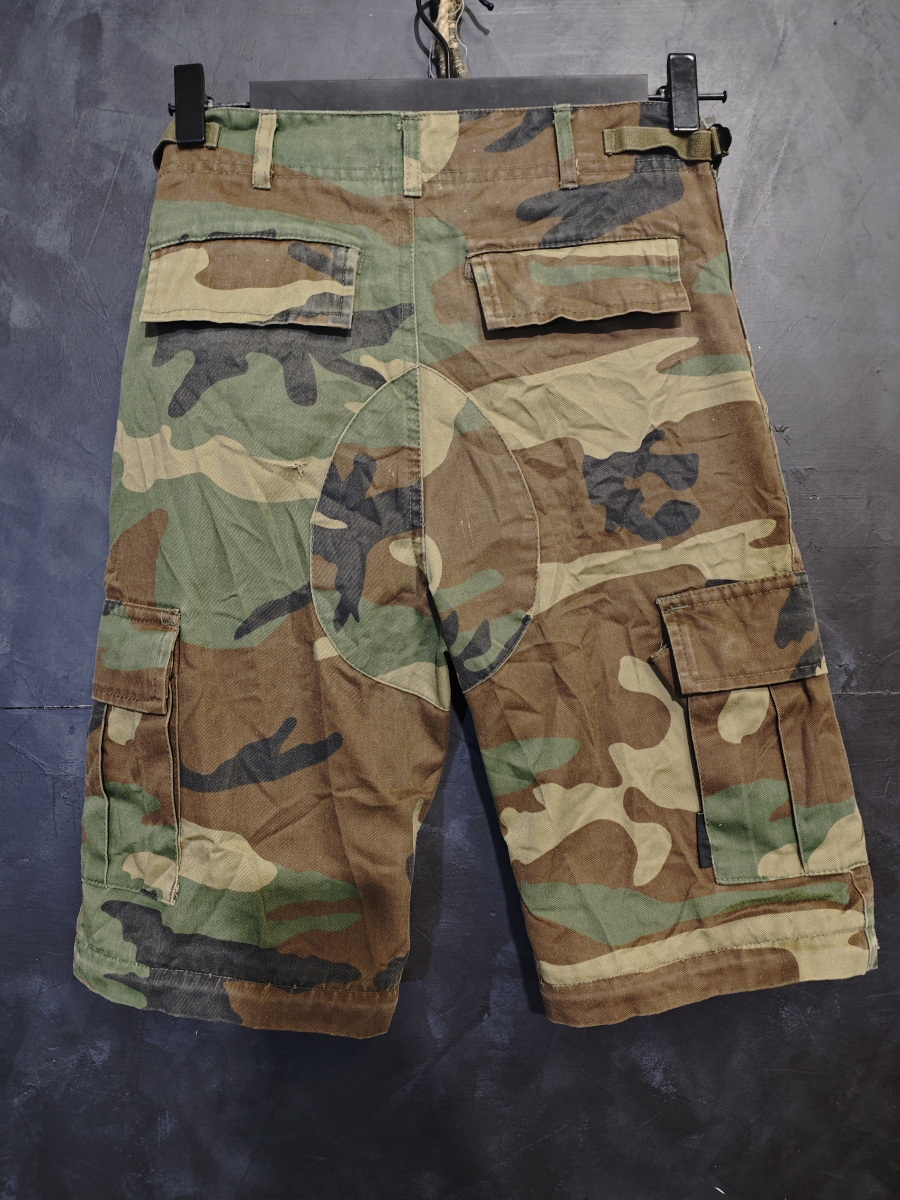 Детские BDU шорты в камуфляже вудленд - с дефектами (заценка на нкани, разрыв сзади, ремонт в паху)