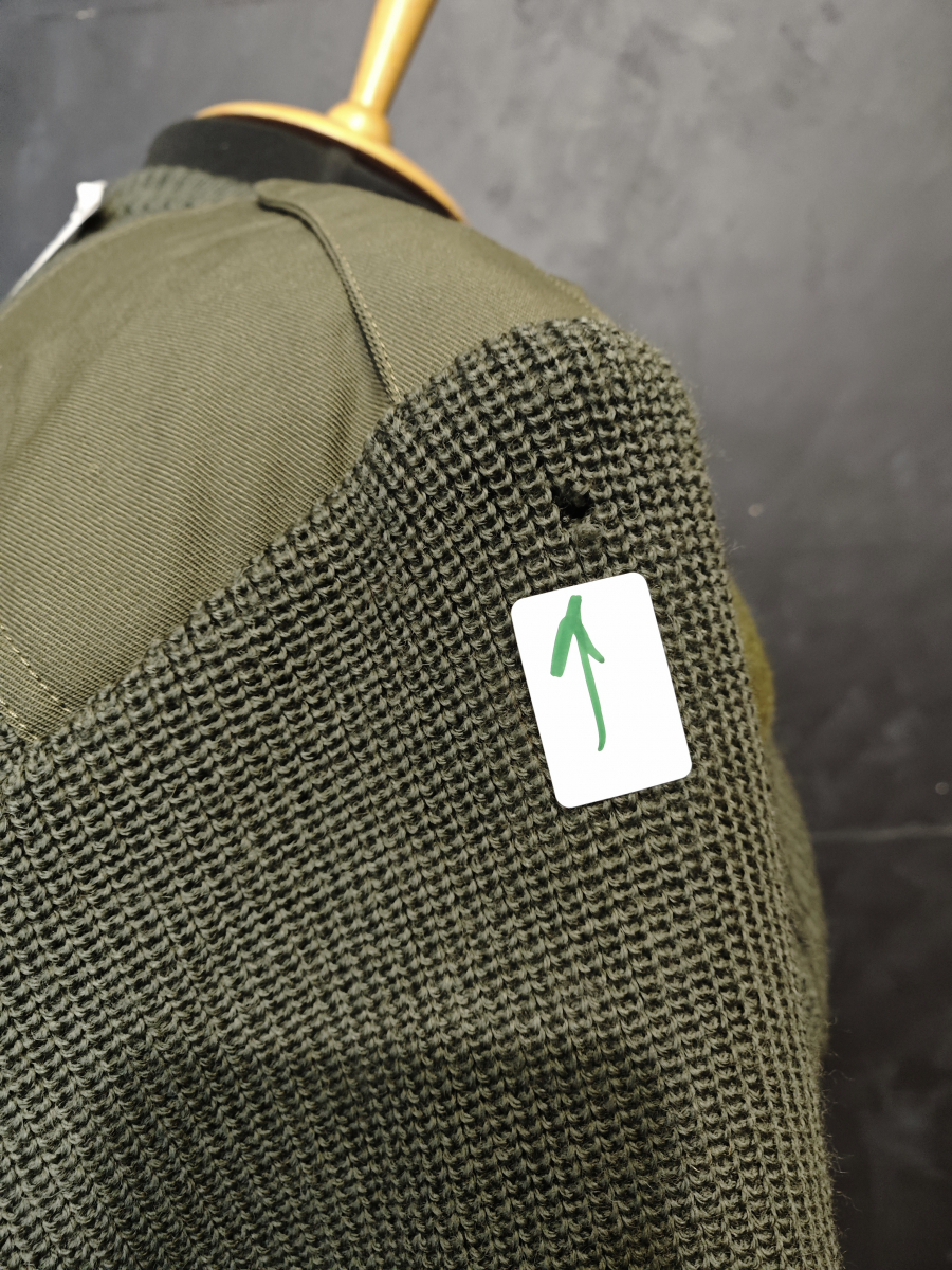 Это новый свитер из чистой щерсти, который не имеет следов использования, но имеет один дефект, который необходимо отремонтировать.