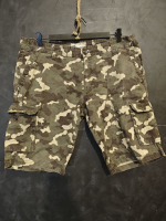 Камуфляжные летние шорты с дефектом молнии (под замену) и сквозным ранением внизу. подробнее